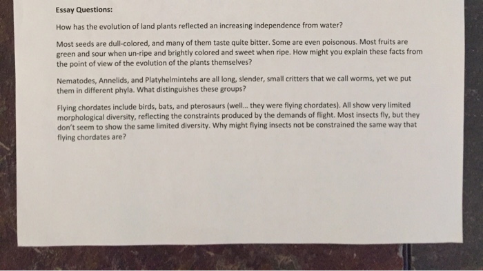 Science Evolution Essay Question Test What importance are homologous structur Explain how overproduction and natural Explain the evidence used to understand - Can see if there is a common ancestor, link between - To com - Assures that some offspring will survive to continue the spe Fossils- Shows the similarities among organisms Each of the three questions will be worth 10 points on the exam. 1. A) Describe the two principles of evolution that Charles Darwin proposed: 1) Common Descent with Modification and 2) Natural Selection. B) Describe what microevolution and macroevolution are. 2 · Human Evolution Essay Topics Why do human beings laugh? Why did human species develop to be dominant on the planet? What distinguishes human brain from the other species? Evolution of human eye. Why do human beings perceive beauty? How does evolution theory explain the existence of language and speech? Recent mutations the humans underwent.2,5/5()